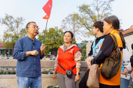 接着是City Walk环节,80名学生分为两组,分别沿着“老舍不欺我,还是济南泉”和“老街与小巷,全是老故事”两条路线进行导赏。这两条路线涵盖了济南老城区的多个历史文化景点,如解放阁、黑虎泉、珍珠泉和王府池子等。在专业导游的带领下,学生们不仅领略了济南老城区的独特魅力,还在沿途参与了抑郁症问答互动打卡活动,进一步普及了抑郁症相关知识和公益意识。