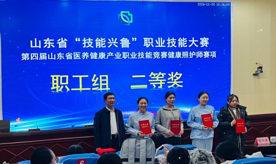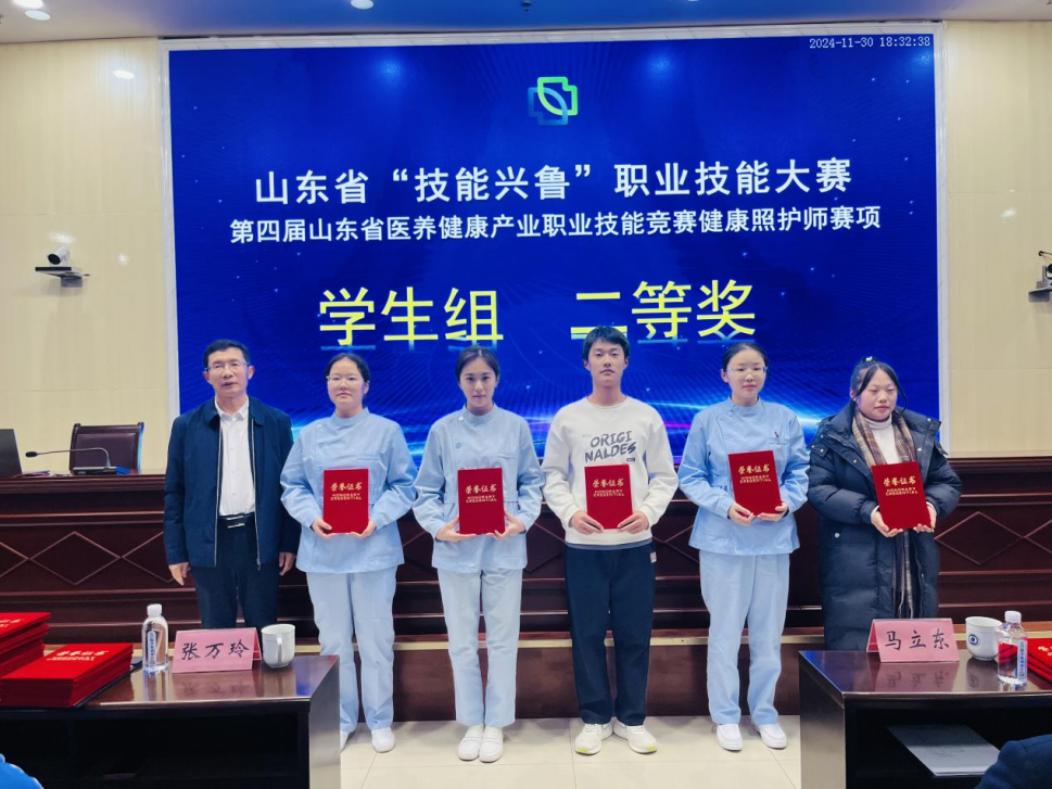 11月29日至30日,山东省“技能兴鲁”职业技能大赛---第四届医养健康产业职业技能竞赛健康照护师赛项在莱芜职业技术学院举行,健康学院焦艳老师和杨靖儒、杨弘杰、陆红鑫三名同学分别参加了师生组健康照护师比赛。该大赛由全省50多家单位,150余名师生参加,健康学院师生凭借出色的表现和扎实的专业技能,获得二等奖3项,三等奖1项的好成绩。