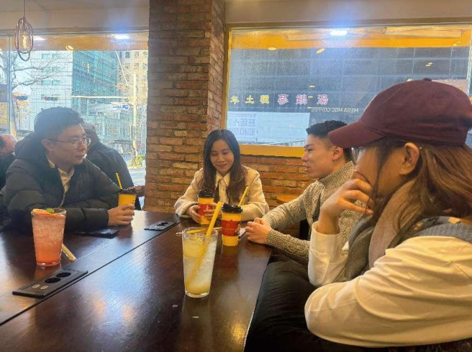 12月6日,姜峤带领访问团抵达韩国首尔,特别慰问了正在韩国外国语大学和韩国国民大学攻读硕士学位的两位优秀留学生代表——盛荣慧与郑广川。访问团为两位优秀学生代表准备了精致的茶歇,并邀请两位学生共进晚餐,氛围温馨而愉快。在交流中,姜峤更是认真听取了两位学生关于在韩学习情况和未来规划的介绍,并对他们取得的优异成绩和坚定目标给予高度评价。他勉励两位同学继续发扬奋斗精神,不忘初心,在学术上取得更大成就的同时,也要在国际舞台上展现中国留学生的卓越风采,这不仅仅是对两位同学的期望,更是对母校所有学子的殷切希望。我们相信,两位同学一定会不负众望,成为母校学子的榜样,激励更多的人勇往直前,追求自己的梦想!