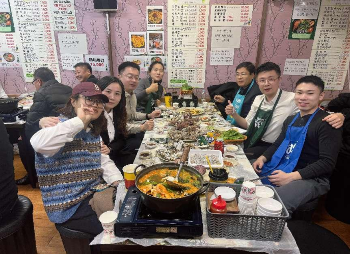 12月2日,访问团一行抵达韩国庆山市,专程前往岭南大学,看望了潘伟豪、赵存乐、张晓嘉、赵正林、谢伯禹五位留学生代表,并与他们共进晚餐。姜峤详细询问了学生们在韩的学习进展、生活状况及面临的困难和挑战,并鼓励学生们珍惜在韩学习的机会,不断提升自我,为未来发展奠定坚实基础。同时,他希望学生们能够传承山东圣翰财贸职业学院的优良传统,展现出中国留学生的良好精神风貌,为增进中韩友谊和文化交流做出贡献。