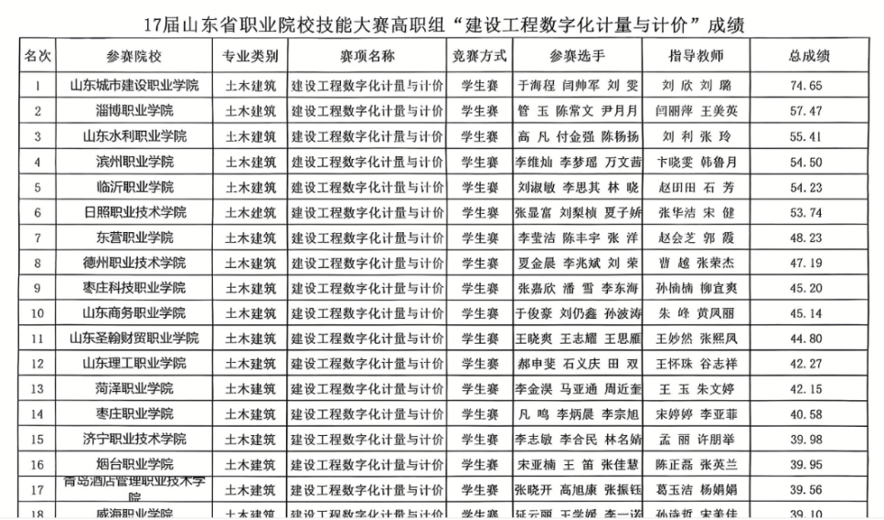 12月11-12日,在山东省教育厅主办的 2024 年山东省职业院校技能大赛建设工程数字化计量与计价赛项中,山东圣翰财贸职业学院智能工学院师生团队奋勇拼搏,取得了优异成绩!