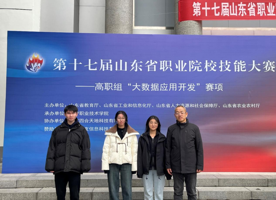 2024年12月9日至10日,第十七届山东省职业院校技能大赛高职组“大数据应用开发”赛项在济宁职业技术学院举行,信息工程学院教师袁强与杨昊泽、李慧仪、张文慧三名同学组成的师生同赛队荣获二等奖。