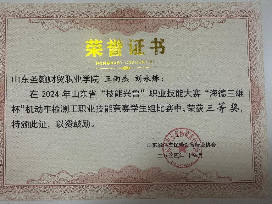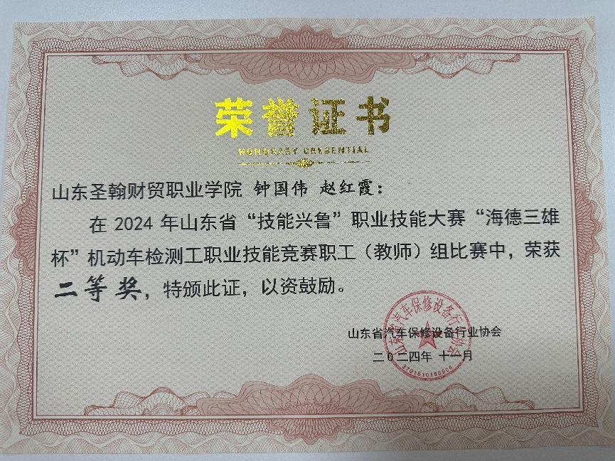 近日,在山东省人力资源和社会保障厅的精心指导下,由山东省汽车保修设备行业协会携手多家专业机构及院校共同举办的2024年山东省“技能兴鲁”职业技能大赛机动车检测工(智能车检测)“海德三雄杯”赛项圆满完赛。山东圣翰财贸职业学院智能工学院师生取得职工组二等奖,学生组三等奖的好成绩。