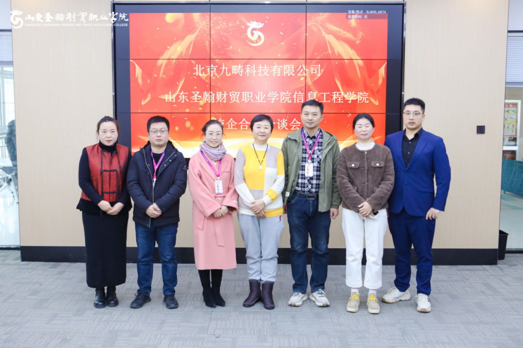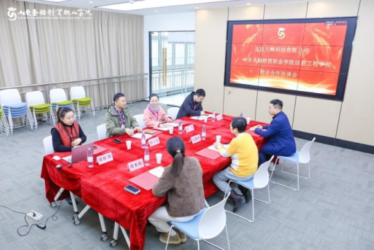 12月 19 日,山东圣翰财贸职业学院信息工程学院与北京九畴科技有限公司校企合作座谈会在学校创梦空间会议室举行。双方就深化校企合作、推动产教融合等议题展开深入交流,共绘未来发展蓝图,旨在为学生提供更优质的实践平台与就业机会,同时为企业输送高素质专业人才,实现校企双赢。