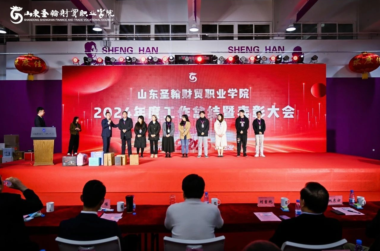 在表彰环节,高磊宣读了《山东圣翰财贸职业学院关于表彰2024年度年终考核优秀单位、优秀人员的决定,姚东方宣读了《山东圣翰财贸职业学院关于表彰2024年度高质量发展领域表现突出的部门和个人的决定》。大会表彰了优秀教育工作者61人、优秀服务保障人员7人、优秀辅导员15人、优秀教师68人、优秀单位8个,省级技能大赛获奖者24人、优秀教科研工作者18人。学校领导依次向优秀个人、先进单位颁奖。