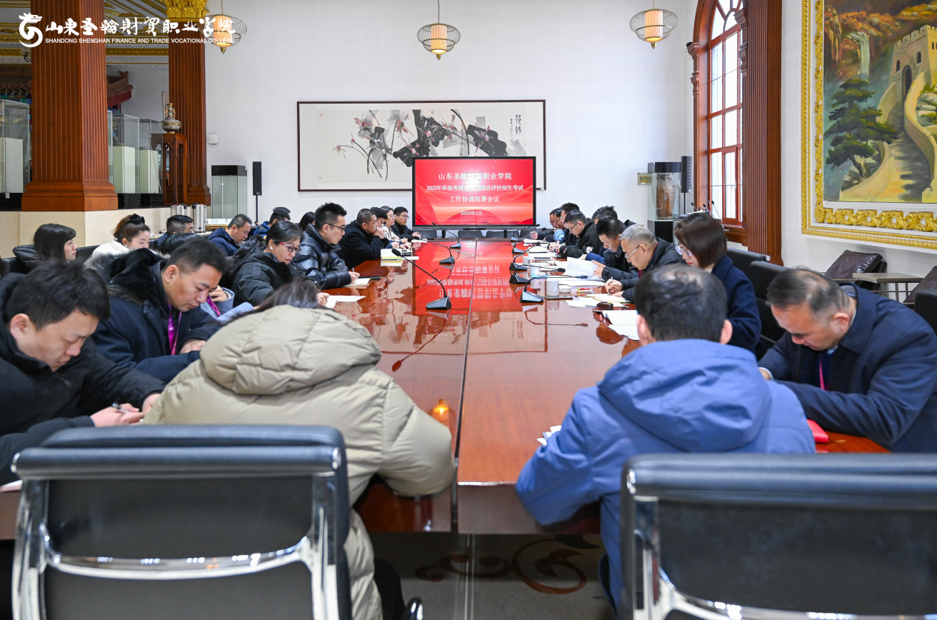 2月24日,山东圣翰财贸职业学院2025年单独考试招生和综合评价招生考试工作协调会在学校府邸二楼会议室召开。学校各相关行政部门负责人、各二级学院负责人参加会议,会议由招生办公室主任王圣文主持,学校党委副书记、常务副校长姜峤,副校长姜义林、阎磊出席会议。