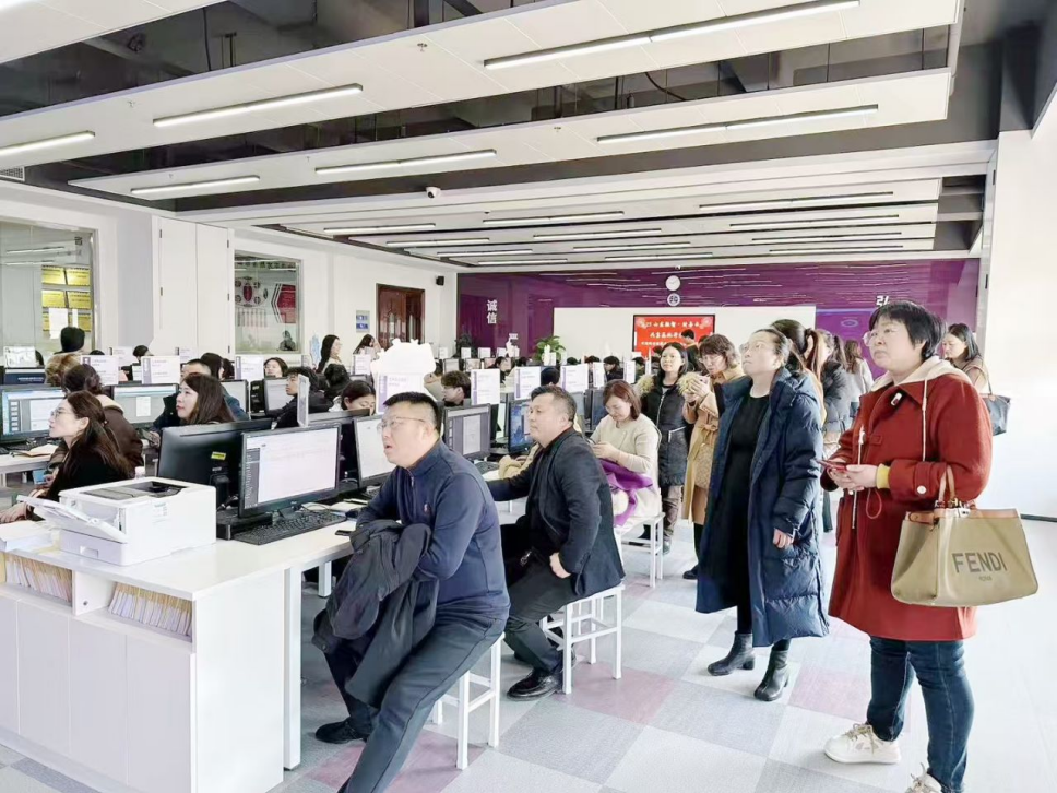 嘉宾们在基地总经理姜珏琪的陪同下参观了财务共享中心文化墙及产业基地。姜珏琪详细介绍了产业基地的构建逻辑、运行状况以及学生的培养现状。产业基地带教老师彭爱华现场演示了融智平台的功能与操作,并通过大数据分析,展示了产业基地在智能化、流程化、规模化等方面的显著优势。