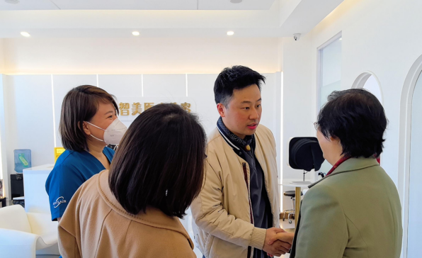 成仁智美美容中心部君萍院长热情接待了访问团队。在参观环节,部君萍带领老师们依次参观了美容院的接待区、皮肤检测室、美容护理室、激光治疗室等各个功能区域。每到一处,部君萍都详细讲解了设备的操作原理、美容项目的流程以及服务理念,老师们认真聆听,不时提出问题,对美容院的实际运营有了直观且深入的认识。