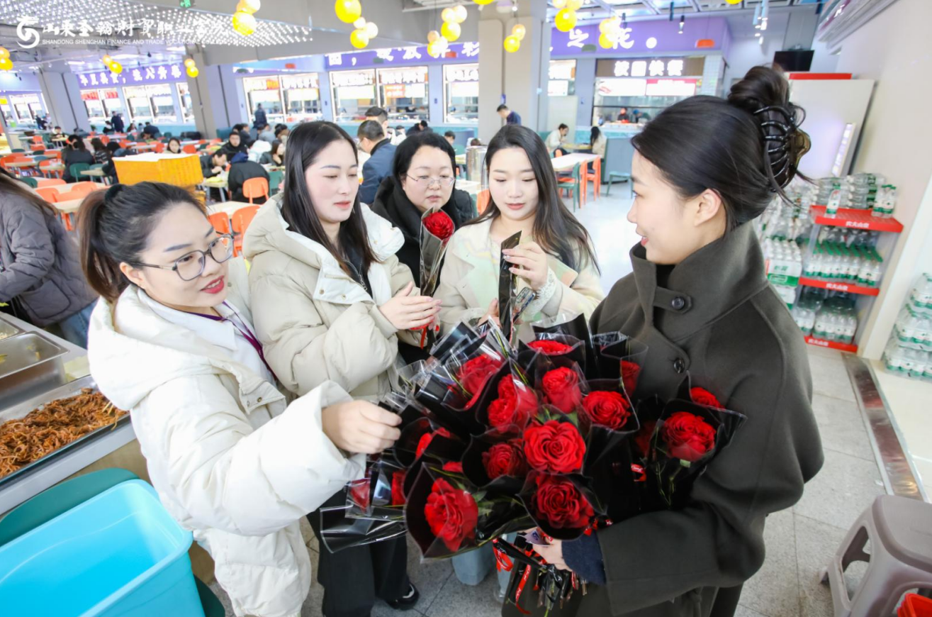 学校餐饮服务中心也积极行动,为全校教职工准备了甜品券,大家在享受美食的同时,感受到了浓浓的节日氛围。3月7日午饭时间,食堂更是充满了浪漫温馨的气息。餐饮服务中心的工作人员为在食堂就餐的女职工们送上娇艳的玫瑰,一朵朵盛开的玫瑰承载着对女教职工们的美好祝福,收到鲜花的女教职工们脸上洋溢着幸福的笑容。