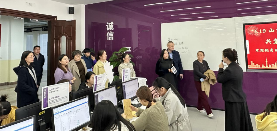 2025年3月19日,商学院山东融智财务云共享基地开放日迎来中国总会计师代理记账行业协会讲师何立猛先生及青岛诺信泰、华信、明伟源、励勤评、广联、惠顺财税、弘祥财税、齐河金智、麦典财税咨询(济南)等九家财税领域知名企业代表参观学习。校企双方通过实地参观、座谈交流,共商人才培养与实习就业创新路径。