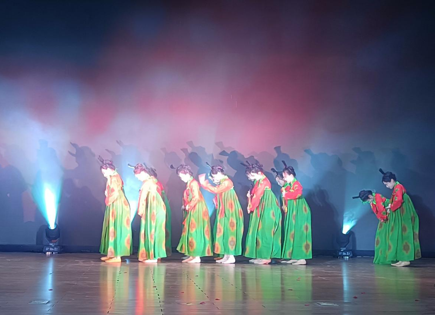 艺术学院师生创编的舞蹈《唐宫夜宴》以盛唐乐舞为载体,通过华美的舞姿,感受古今相通的追求——国泰民安,无病无灾!