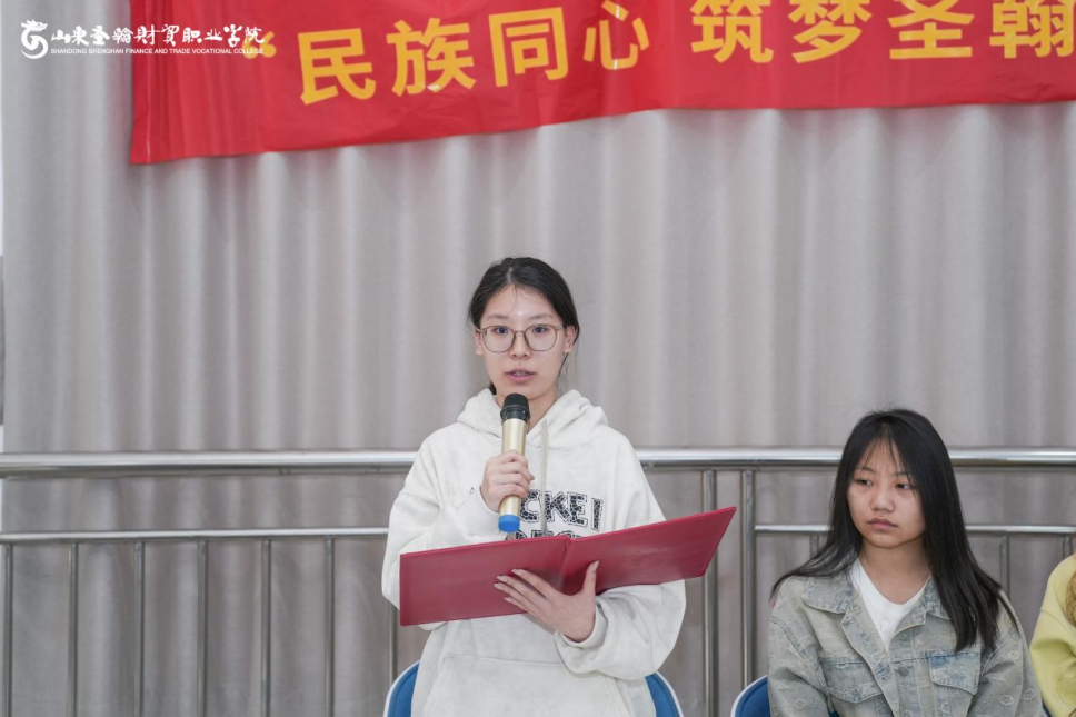 云商传媒学院学生李筱涵作为少数民族学生代表围绕入校以来的感悟、学习情况、文体活动、志愿服务等方面进行了详细且生动的分享,鼓励大家努力学习,携手共进,做民族团结的守护者、推动者和践行者。要以实际行动展现少数民族学生的风采,为建设更加美好的校园、为实现中华民族伟大复兴的中国梦贡献自己的力量。