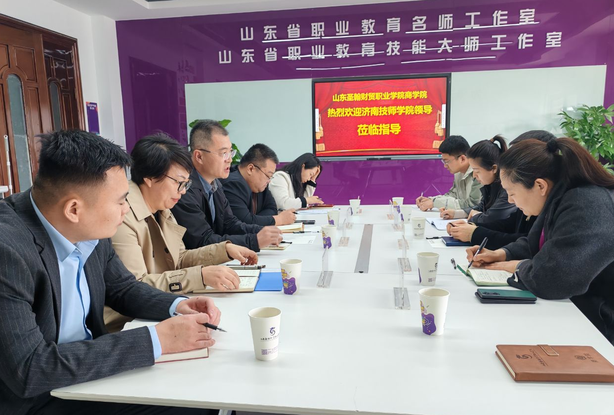 为深化职业教育改革,促进文旅与商科专业交叉融合,2025年4月1日,济南技师学院文化与旅游学院院长李华夏率教学团队赴山东圣翰财贸职业学院商学院,与学校教务处处长李涛、商学院院长盖晓艳及骨干教师团队开展交流学习,并实地参观了商学院的“融智财务云共享基地”。双方围绕专业建设、人才培养、实习就业、国际合作及实训基地建设等领域展开深入对话,共谋协同发展新篇章。