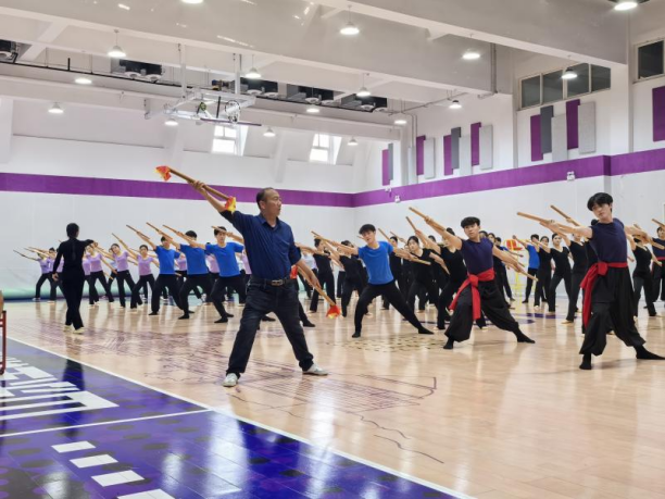许兆河老师在实践环节中,从握棒姿势、基本步法教起,并对动作进行拆解。学生们在反复练习中逐渐领悟到,双棒舞蹈不仅是肢体语言,更是对“力与美平衡”的传统哲学诠释。
