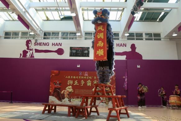 为推进非物质文化遗产保护,推动中华优秀传统文化传承创新,4月10日,山东圣翰财贸职业学院隆重举办首届“狮王”争霸赛暨长清高校文化交流赛在山东圣翰财贸职业学院举办。来自山东师范大学、山东中医药大学等8所高校的龙狮队伍齐聚圣翰,以传统文化为媒,共谱高校协同育人新篇章。山东圣翰财贸职业学院校长刘广耀、副校长阎磊、山东省龙狮协会副会长滑端鹏、济南兄弟舞狮团团长王艳辉,以及山东交通学院、济南幼儿师范高等专科学校等8所高校的专家代表与师生共同见证传统文化在青春校园的璀璨绽放。