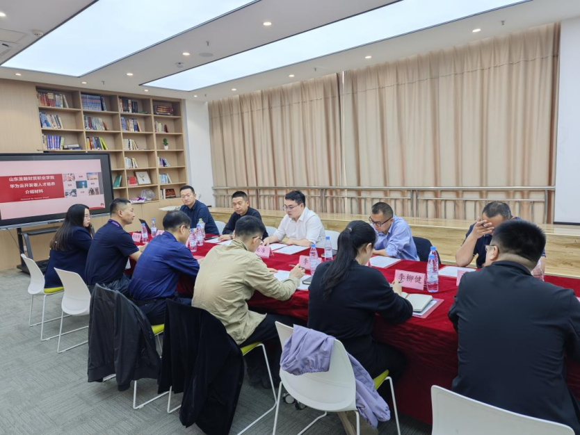 山东云销售伙伴部部长宋准、华为云开发者人才培养产品运营总监陈明、山东云销售伙伴部BD经理张令凯、华为云生态合作伙伴山东教友总经理李杨以及华为云生态合作伙伴山东教友产品经理张秀强出席洽谈会。我校组织人事部部长胡伟、教务处处长李涛、实习就业办公室副主任李柳健、信息工程学院党总支书记兼院长杨立涛、信息工程学院教学院长刘永波以及实习就业负责人张红伟参加了此次洽谈会。