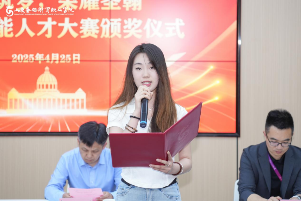 优秀学生代表郭胤婷在发言中分享了自己的参赛经验和收获。她表示,在备赛过程中,不仅掌握了丰富的专业知识,还锻炼了自身的实践能力和团队协作能力。同时,感谢学院提供的此次参赛机会,感谢老师们的辛勤指导,让自己在比赛中得到锻炼和成长。她鼓励同学们要积极参与各类技能大赛,不断提升自身的综合素质,为将来的职业发展奠定基础。