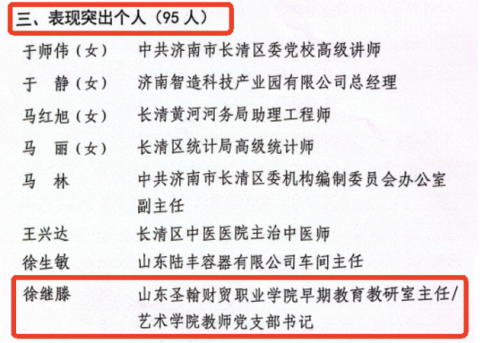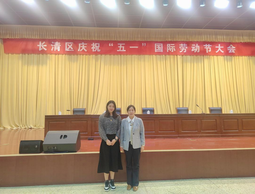 艺术学院的突出表现赢得高度认可,获评长清区“表现突出单位”,早期教育教研室主任徐继滕被授予“表现突出个人”称号。这一殊荣既是对学院育人质量的肯定,更是对“以赛促建”工作模式的生动诠释。4月25日,盛雅欣与徐继滕代表学院出席长清区总工会组织的庆祝“五一”国际劳动节大会,与全区劳动模范、先进工作者共话新时代奋斗者使命担当。