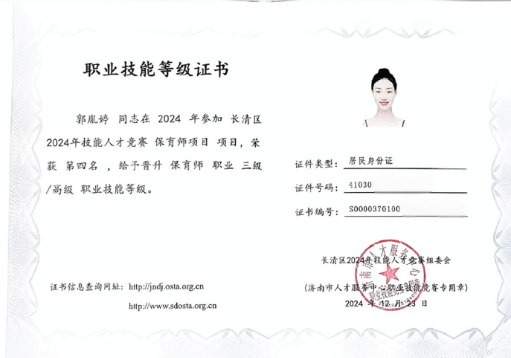 2024年11月,长清区总工会以“项目深化年”劳动竞赛为抓手,推动全区形成“比学赶超”的奋进氛围。艺术学院积极响应号召,在院长亓睿、创新创业学院院长盛雅欣的统筹部署下,早期教育专业师生以赛促学、以赛促练,实现技能提升与赛事成果双突破。学院创新构建“课程讲解-赛前培训-考证转化”三位一体培养机制,将教学标准与竞赛要求深度融合,形成“学-训-考”闭环提升链条。在长清区保育师人才技能大赛中,6名教师与112名学生全员参与,最终118人成功考取高级(三级)保育师职业技能等级证书,考证转化率达100%,彰显出职业教育“岗课赛证”综合育人的显著成效。