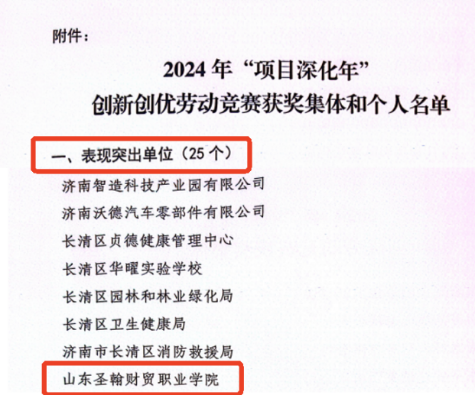 2025年4月,长清区总工会正式公布2024年“项目深化年”劳动竞赛成果,山东圣翰财贸职业学院艺术学院凭借卓越的组织成效和育人成果,在众多参赛单位中脱颖而出。