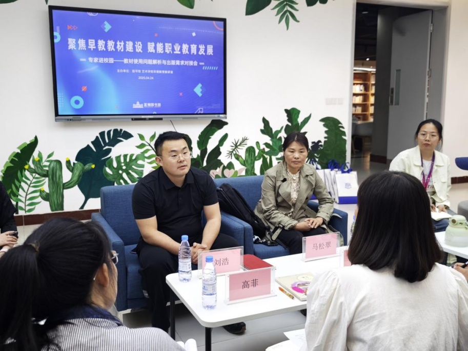 为深化职业教育改革,落实教育部“十四五”规划教材建设目标,4月24日,山东圣翰财贸职业学院图书馆联合高等教育出版社举办“聚焦早教教材建设,赋能职业教育发展”专题研讨会。会议由图书馆副馆长高菲主持,邀请国家规划教材专家、青岛职业技术学院马松翠教授、高等教育出版社刘浩编辑、艺术学院早期教育教研室主任徐继滕及相关专业教师、图书馆教材管理馆员参会。围绕职业教育教材数字化转型、产教融合创新等议题展开深度交流,共探“岗课赛证”融通的教学资源体系建设路径。