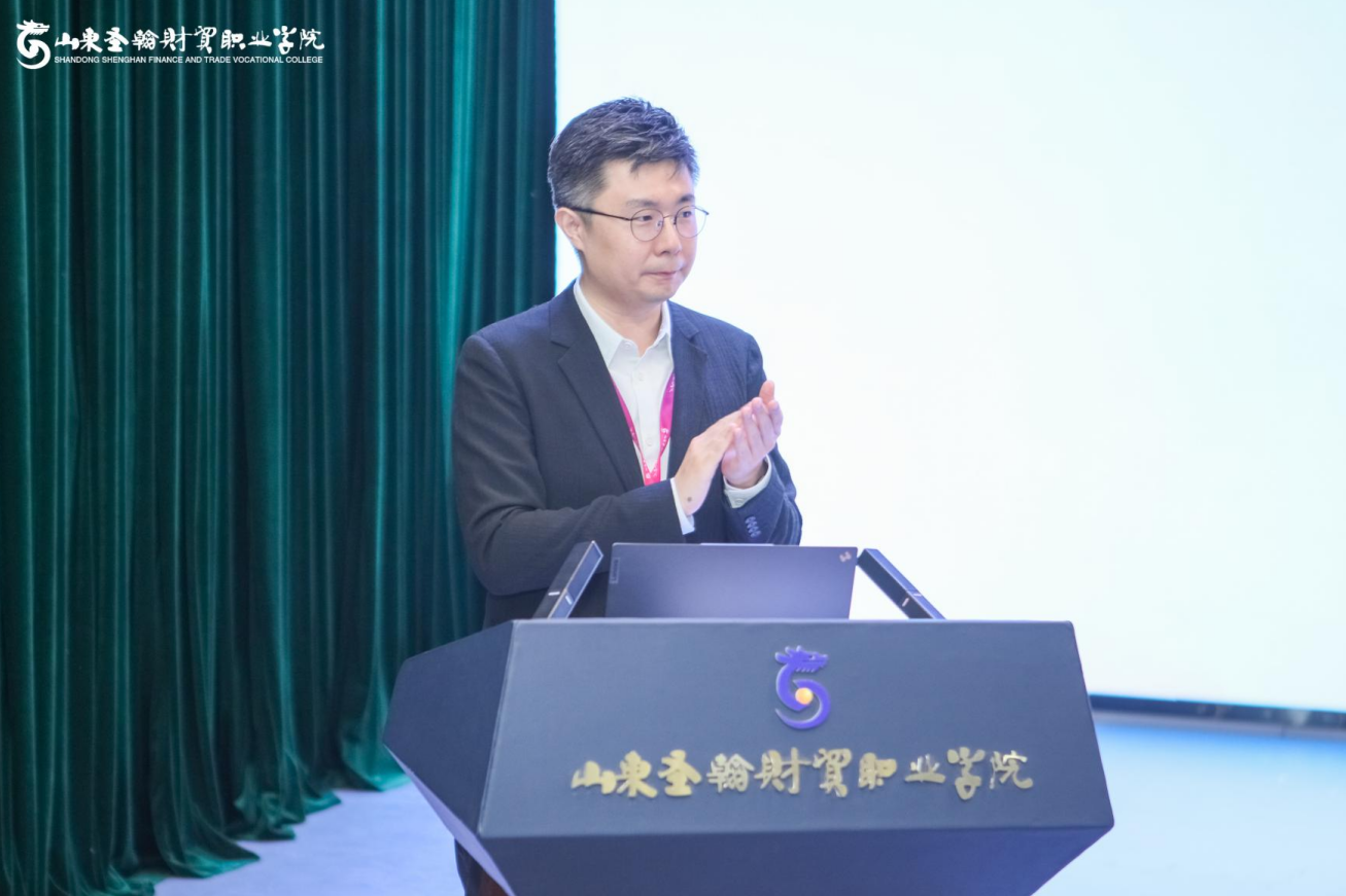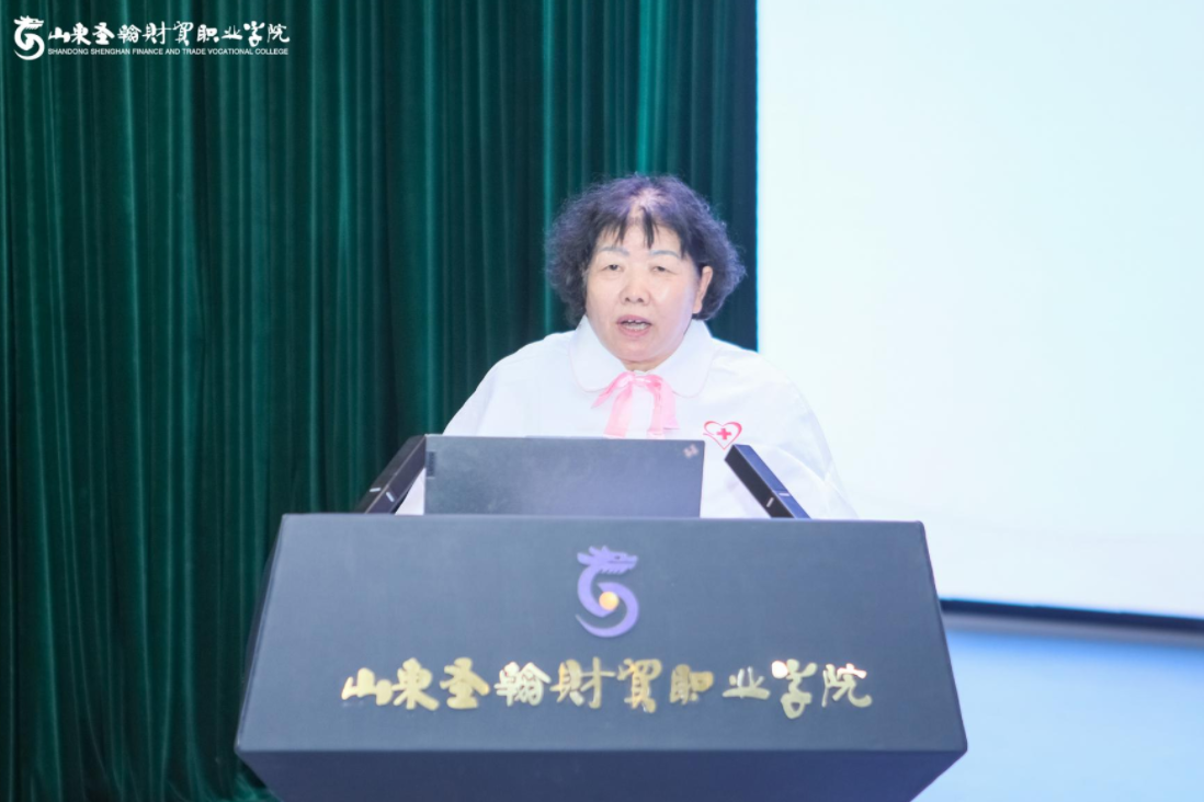 宋豫发表讲话,他充分肯定了山东圣翰财贸职业学院在教育实践中的积极探索,祝贺志愿护理服务队的成立,强调这一举措高度契合教育全面育人目标,能有效培养学生社会责任感与专业素养,增强服务意识。