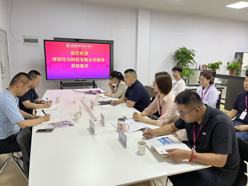 为深化产教融合,推动高水平专业群建设,探索场景化实训与AI康养产业共同体的创新路径,2025年5月20日,深圳作为科技有限公司与山东圣翰财贸职业学院健康学院校企合作洽谈研讨活动在健康学院三楼院长办公室成功举办。本次活动以“产教协同育人才,AI赋能新康养”为主题,深圳作为科技有限公司山东区域校企合作总监杨发强、项目管理总监王海涛,山东圣翰财贸职业学院实习就业办主任冯兴师、健康学院院长汪娟海、教学副院长王学屏、学管副院长李磊等校企双方代表出席,活动由健康学院院长汪娟海主持。