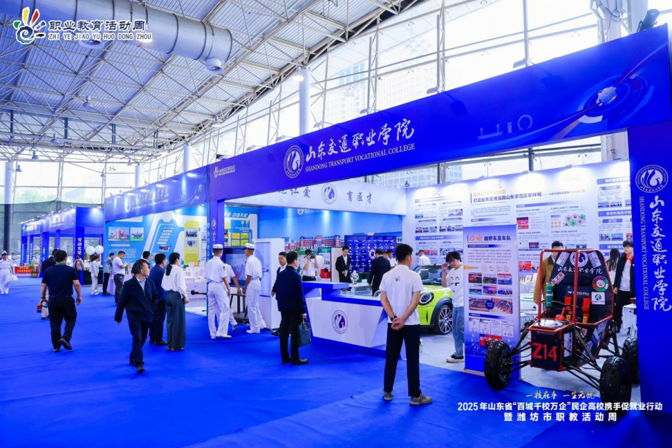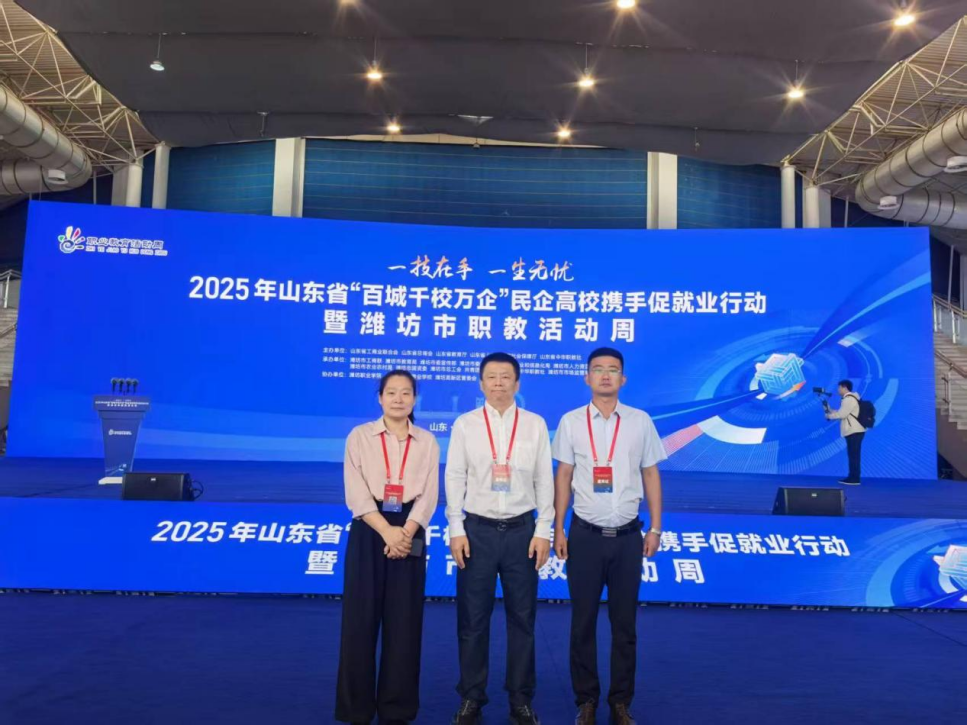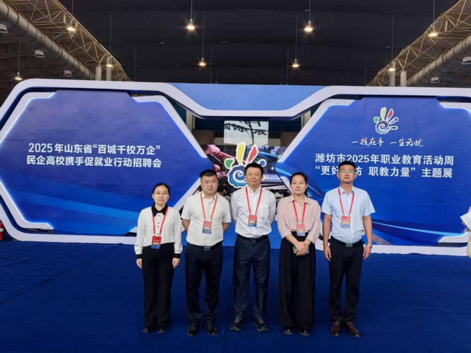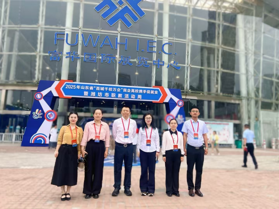 启动仪式结束后,阎磊带领实习就业办公室主任冯兴师、商学院院长盖晓艳等老师参观了潍坊市2025年职业教育活动周“更好潍坊 职教力量”主题展,并走访重点参会企业。