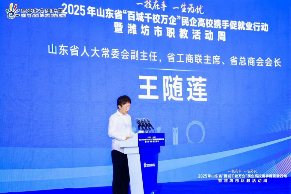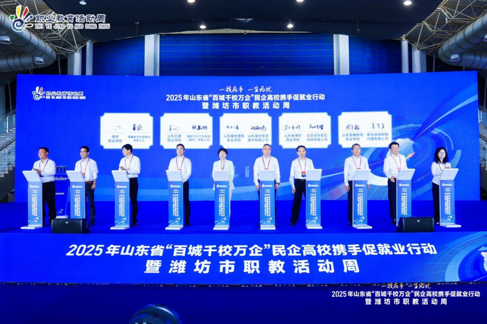 启动仪式由潍坊市副市长、潍坊市工商联主席陈端梅主持。潍坊市委书记刘运在致辞中指出:职业教育要立足“匠心匠能”培养,通过校企协同育人实现“一技在手,一生无忧”的育人目标。山东省人大常委会副主任、省工商联主席、省总商会会长王随莲在总结讲话中强调,要通过“政行企校”四方联动,发挥百城的平台优势、千校的智慧力量和万企的实干担当,脚踏实地为大学生构建“多元选择、灵活发展”的职业通道。