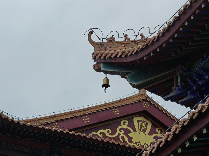 穿过“不二法门”山门,三重院落沿中轴线次第展开,如同一部凝固的哲学诗篇。歇山顶式山门檐角翚飞,斗拱层叠间可见“双泉印月”砖雕,取意“佛法如泉,双源归一”。拾级而上,钟鼓楼分列东西,晨钟暮鼓的韵律与山间松涛形成奇妙共振,暗合《华严经》“闻钟声,烦恼轻”的禅意。
