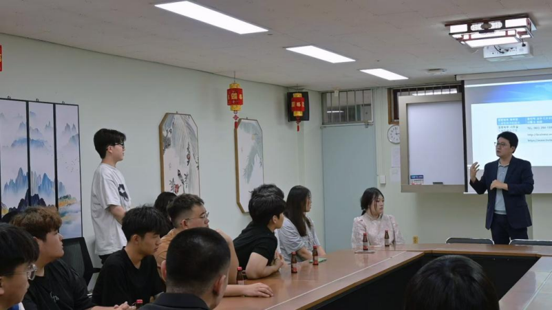 23日,研学团一行参加了又石大学文化课程,体验韩国课堂,拓宽认知视野。商学院朴锡在教授前往课堂看望同学们,亲切询问大家的学习与生活情况,勉励同学们扎实掌握专业知识,为职业发展奠定理论基础。