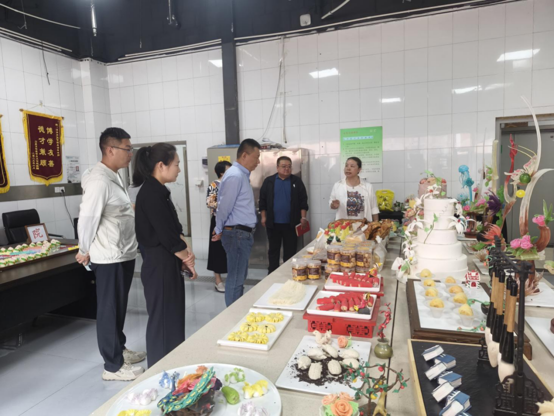在邓铁成书记与李华夏院长的陪同下,阎磊一行首先实地探访了文旅学院的中式面点与西式面点实训基地。现代化的烘焙设备排列有序,浓郁的麦香与甜点气息交织弥漫。“这些实训室不仅是技能锤炼的熔炉,更是匠心传承的摇篮。”盖晓艳在参观后表示,“文旅学院对实训条件的高标准投入和项目化教学模式的成熟应用,为学生构建了无缝对接行业真实需求的成长阶梯,其教学理念与实践模式非常值得借鉴。”