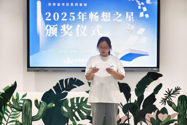 颁奖环节中,16名“读者之星”和5名“畅想之星”依次上台领奖,获奖者凭借年度借阅量、文明借阅及阅读打卡表现脱颖而出。获奖学生杨晴分享了阅读心得,图书馆丰富的资源和多元的活动帮助她养成阅读习惯,在知识积累中实现自我成长。