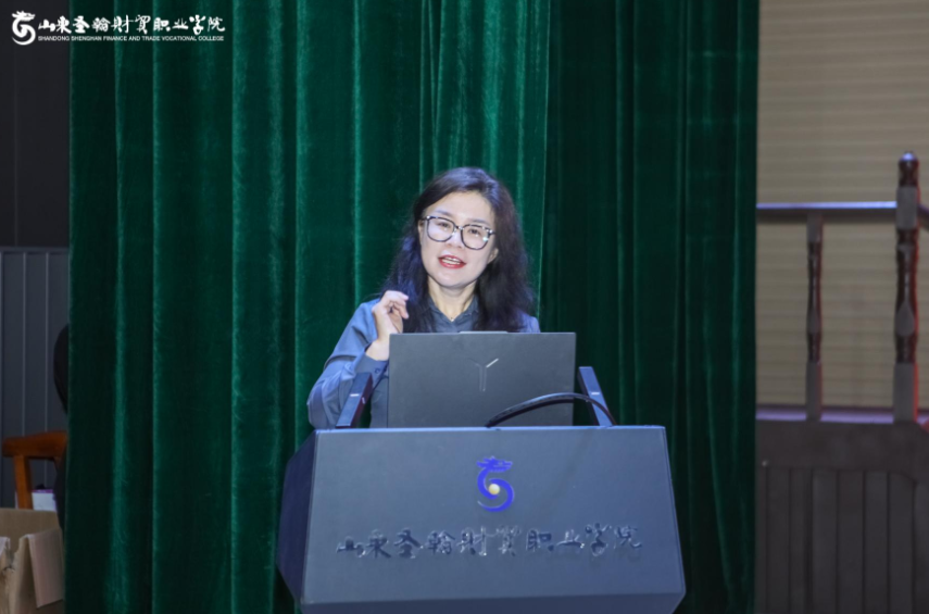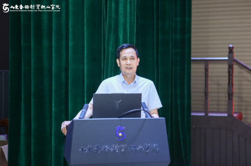 为深化产教融合建设,表彰先进工作典型,6月19日下午,山东圣翰财贸职业学院在吉纯楼第一报告厅举行“融智·财务云共享产业基地”工作总结表彰大会。青岛佳德信企业管理集团董事长姜芳芳,学校领导姚东方、阎磊出席活动,教务处、学生处、实习就业办等相关部门负责人,商学院师生代表现场参加大会,共同见证财会人才培养的创新成果。