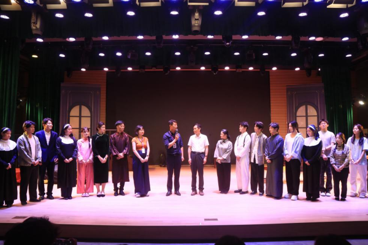 演出结束后,校领导走上舞台,与参演学生亲切握手并合影留念。领导们对同学们的精彩表现给予了高度评价,充分肯定了他们在毕业大戏筹备过程中付出的努力和展现出的专业素养。同时,也鼓励同学们在未来的艺术道路上继续保持这份热爱与执着,不断提升自我,创作出更多优秀的作品。