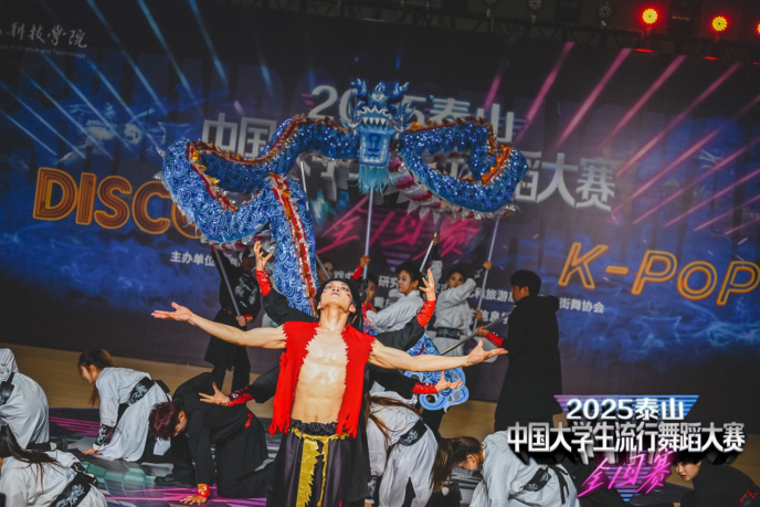 近日,“2025泰山·中国大学生流行舞蹈大赛”决赛在泰安圆满落幕。山东圣翰财贸职业学院艺术学院流行舞专业学生在程世龙、蒲照两位老师的带领下,凭借原创作品《哪吒》以极具感染力的表演征服评委,一举夺得Disco齐舞组别冠军,为校争光。