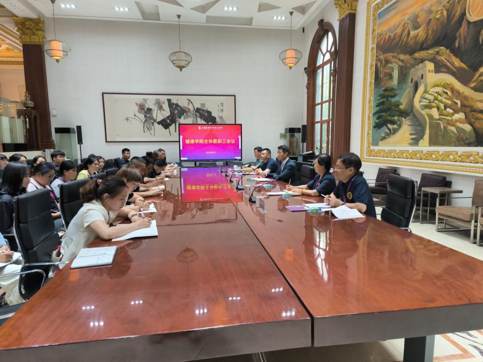 6月25日,健康学院在学校府邸二楼会议室召开工作会议,会议重点研究学院未来的发展方向,并做学期工作总结。校长刘广耀出席会议并讲话,副校长阎磊在会上宣读了健康学院特聘专家岗位任命通知。