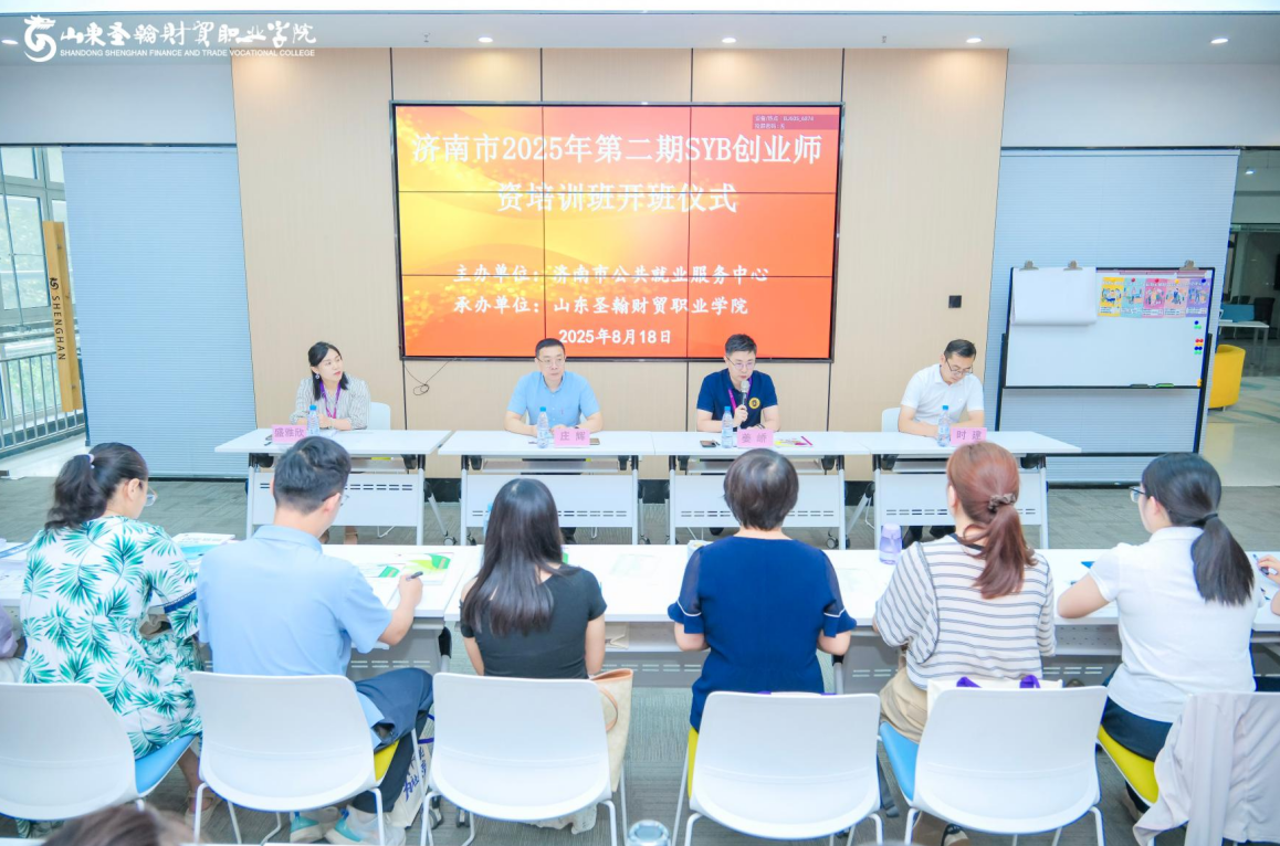 为深入贯彻国家创新创业教育改革核心精神,切实筑牢济南市创业培训师资队伍建设根基,2025年8月18日,由济南市公共就业服务中心主办、山东圣翰财贸职业学院承办的济南市2025年第二期 SYB创业培训师资班在山东圣翰财贸职业学院创梦空间成功启幕。来自省内外高等学校、创业培训机构、企业等30名学员参加了本期培训。