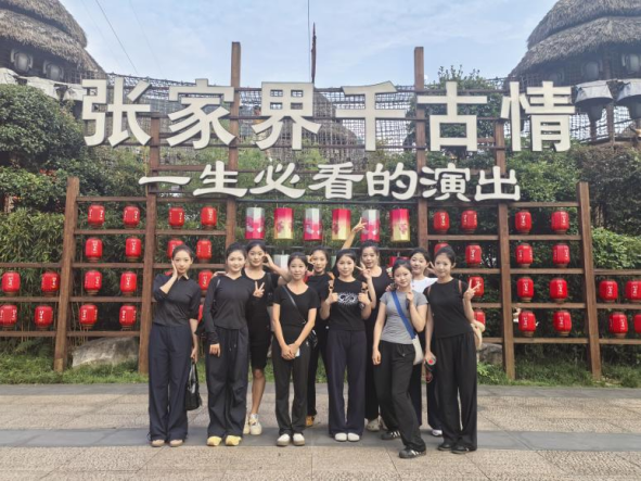 近日,艺术学院舞蹈专业学生赴张家界千古情剧院开展专业实习,首周表现获得剧院方高度评价。实习生们以扎实的专业功底、高效的学习能力和饱满的创作热情,迅速融入剧组排练与演出工作,展现出我校艺术人才培养的卓越成果。