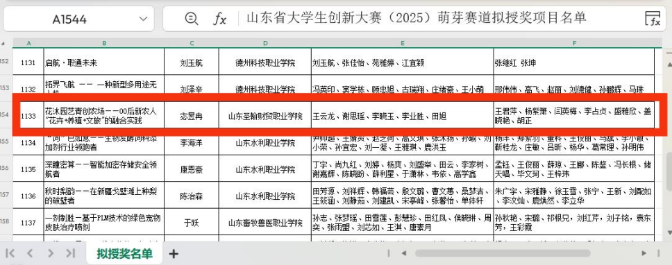 山东圣翰财贸职业学院商学院宓昱冉同学带领其创业团队5名成员申报的《花沐园艺青创农场》项目喜获“建行杯”山东省大学生创新大赛(2025)“铜奖”。