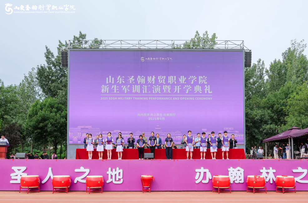 9月21日上午,山东圣翰财贸职业学院2025级新生军训汇演暨开学典礼在主体育场盛大举行。济南长清大学城管委会、长清区人民武装部、平安街道派出所领导,集团及学校领导班子与全体师生齐聚一堂,共同见证新一代圣翰学子以昂扬姿态开启人生新篇章。