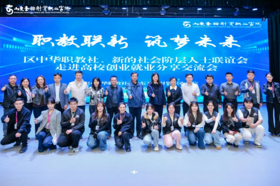 活动最后,全体参会领导、嘉宾与师生代表共同合影留念,为此次交流会画上圆满句号。此次“职教联新 筑梦未来”活动,是山东圣翰财贸职业学院深化校社合作、推进产教融合的又一重要实践。未来,学院将以“职教同心服务站”“新的社会阶层宣讲站”为纽带,持续加强与区中华职教社、区新联会及社会各界的联动,不断整合优质资源,常态化开展创就业指导、技能培训、项目孵化等活动,切实将校社协同优势转化为人才培养实效,助力每一位圣翰学子在职业教育的沃土上成长成才,为区域经济社会发展输送更多高素质应用型人才。