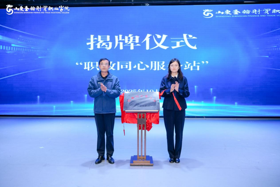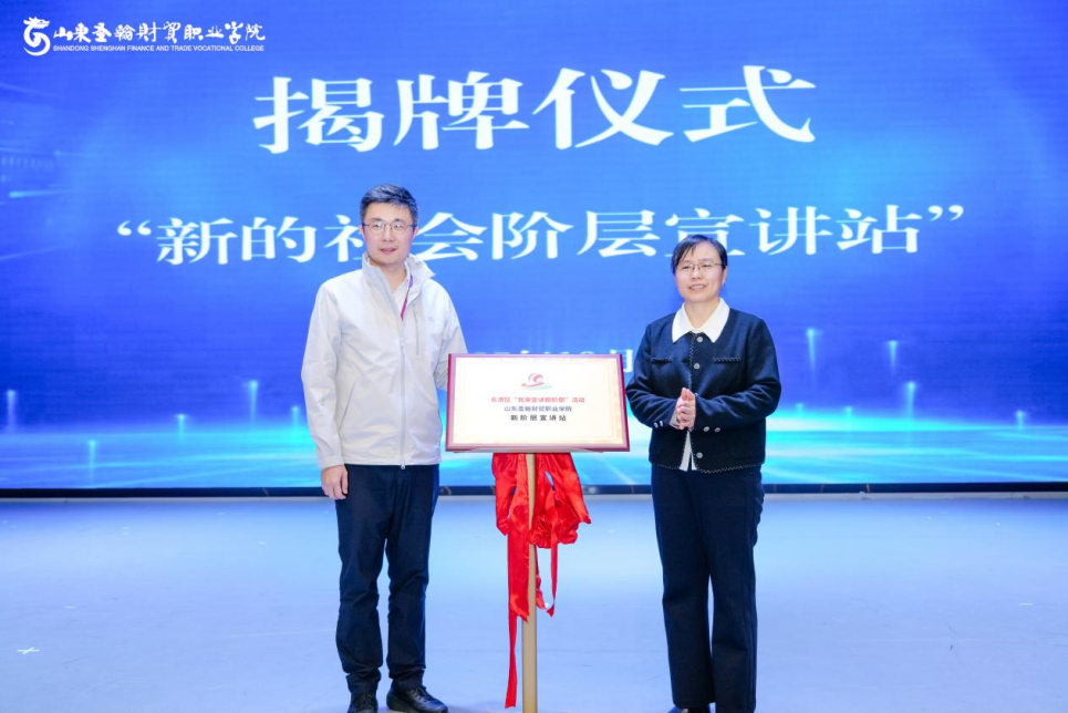 在全场嘉宾与师生的见证下,张勇、刘晓婧、姜峤、邢万颖四位领导共同为“职教同心服务站”和“新的社会阶层宣讲站”揭牌。据了解,两个站点的设立是区中华职教社、区新联会与学院深化合作的重要成果,未来将作为校社联动的核心平台,常态化开展政策宣讲、创业指导、资源对接等服务,让职教政策红利直达校园,让新阶层人士的创新智慧精准赋能学生成长。
