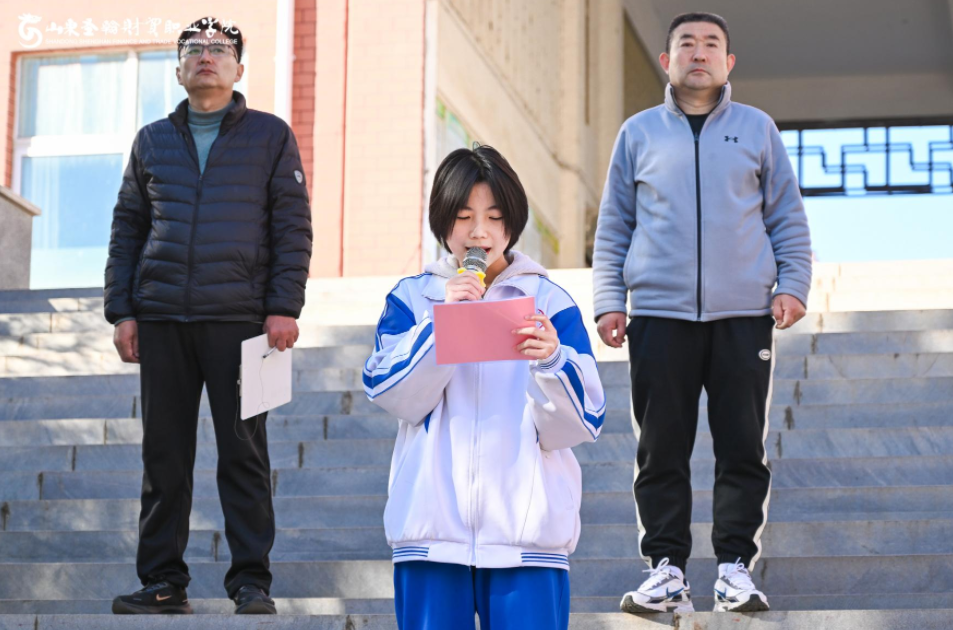 国旗下,长清区第五初级中学师生代表依次发言。学生代表分享了对国旗、国防的理解与感悟,表达了勤奋学习、报效祖国的决心;教师代表寄语全体同学,希望大家以此次活动为契机,树立国防意识,厚植爱国情怀,将个人理想融入国家发展大局,努力成长为担当民族复兴大任的时代新人。