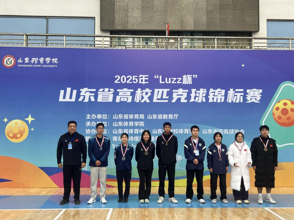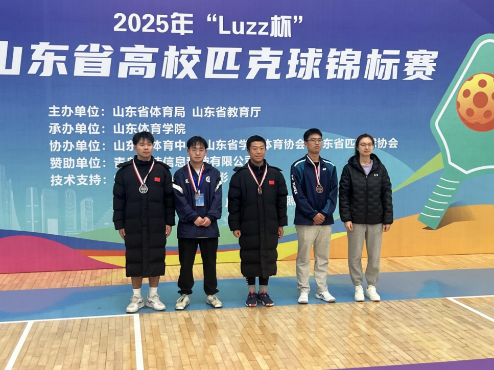 近日,由山东省体育局、山东省教育厅主办的2025年“Luzz杯”首届山东省高校匹克球锦标赛在山东体育学院日照校区顺利结束,来自全省50支高校代表队的近500名运动员在为期7天的赛事中展开了激烈角逐。我校由崔永红老师、陈士亮老师带队,派出五名选手参加比赛,最终乙组两名选手从众多高手中脱颖而出,获得男单季军,混双亚军的好成绩。