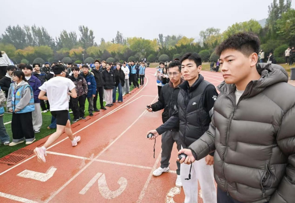 测试过程中,学生们精神饱满、奋勇争先:跑道上,学子们挥汗奔跑、咬牙坚持;跳远场地,一次次助跑、起跳、落地,展现青春活力;力量测试区,同学们相互鼓劲、挑战自我。监考教师严格履职,精准记录每一项数据,确保测试结果真实有效;志愿者们热情服务,协助维护现场秩序、传递器材,为体测工作高效推进提供有力支持。