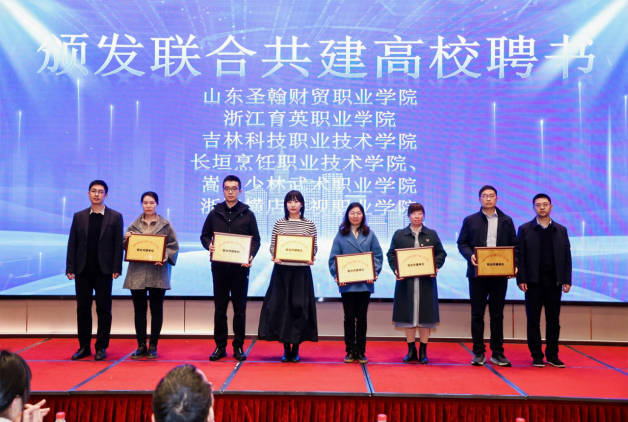活动现场,山东圣翰财贸职业学院凭借在艺术教育与人才培养领域的深厚积淀,成功获评东阳市影视文旅产业人才学院联合共建单位。亓睿院长与李金洋主任因在相关专业领域的丰富经验和行业影响力,获颁产才学院顾问聘书,将深度参与学院发展规划、课程体系构建等核心工作,为影视文旅产业人才培养注入圣翰智慧。