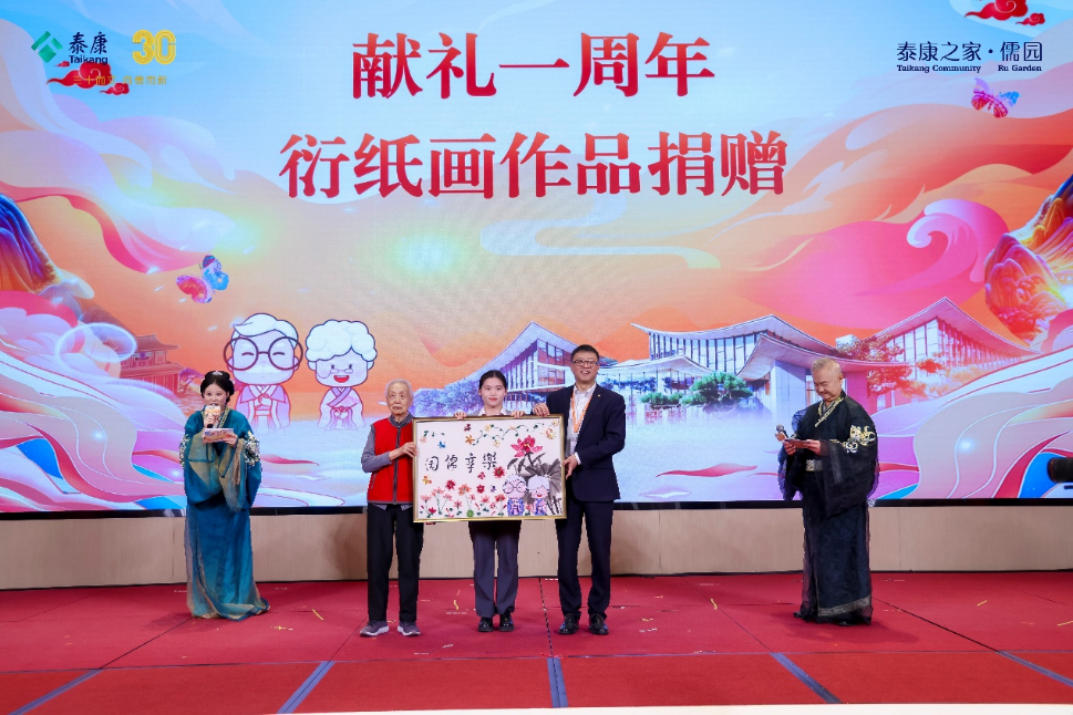 庆典现场还设置了“岁月鎏金奖”“四季芳华奖”等多轮抽奖环节,并举行了书画作品捐赠仪式,居民们以笔墨寄情,为儒园一周年送上文化祝福。