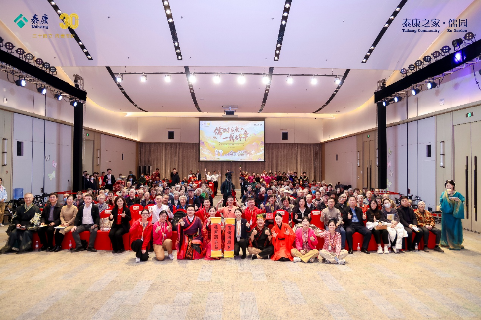 本次庆典以“儒文化”为核心脉络,分“乐享泰康・银铃乐章”“温情时刻・共启新章”两大时段,呈现了近20个精心编排的节目:开场节目《母亲是中华》以激昂鼓点拉开序幕,舞动柔力球俱乐部带来的《阳光华年》尽显银发群体的活力风貌;儒园服务团队原创的情景剧《孔子游诸国・儒园奇遇记》《道不尽的儒园情》,将儒家“孝悌亲仁”理念与园区日常服务巧妙融合,生动还原了儒园“文化养老”的生活场景;合作单位带来的合唱《没有共产党就没有新中国》、舞蹈《十送红军》,以青春之声传递红色精神,引发全场共鸣;此外,新疆舞《祝你生日快乐》、太极剑《三十二式太极剑》、非洲鼓《再唱山歌给党听》等节目轮番登场,涵盖多民族文化与传统技艺,为现场增添了多元色彩。