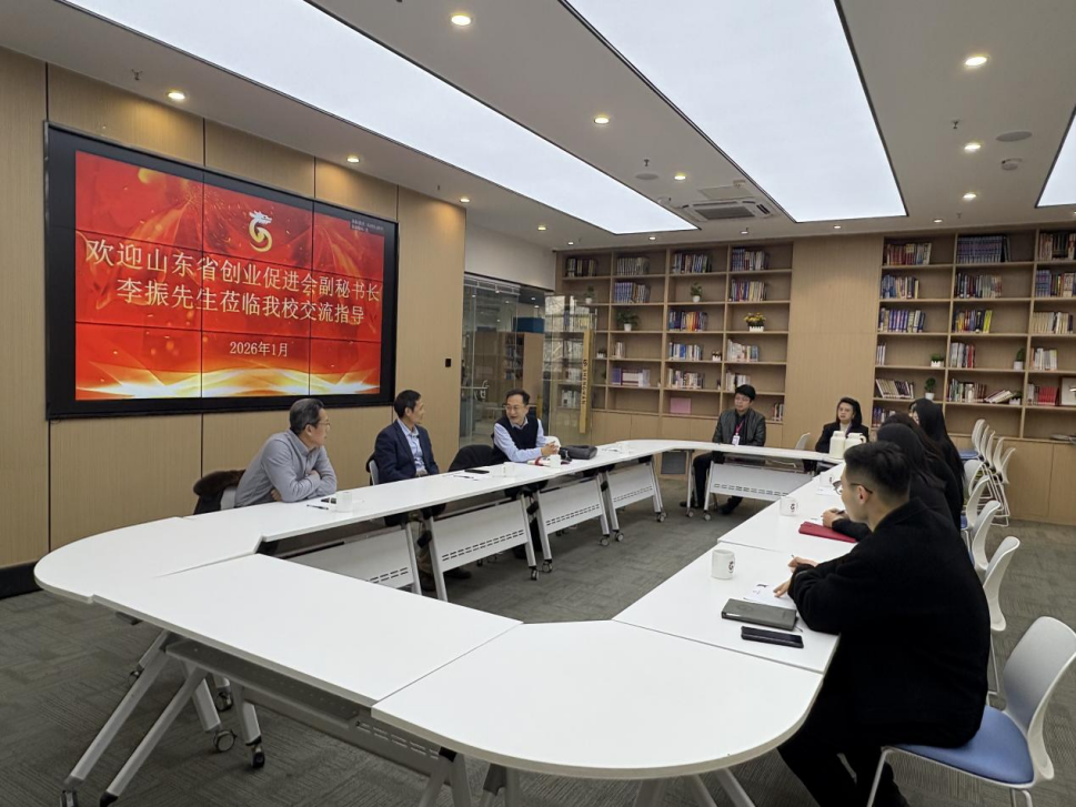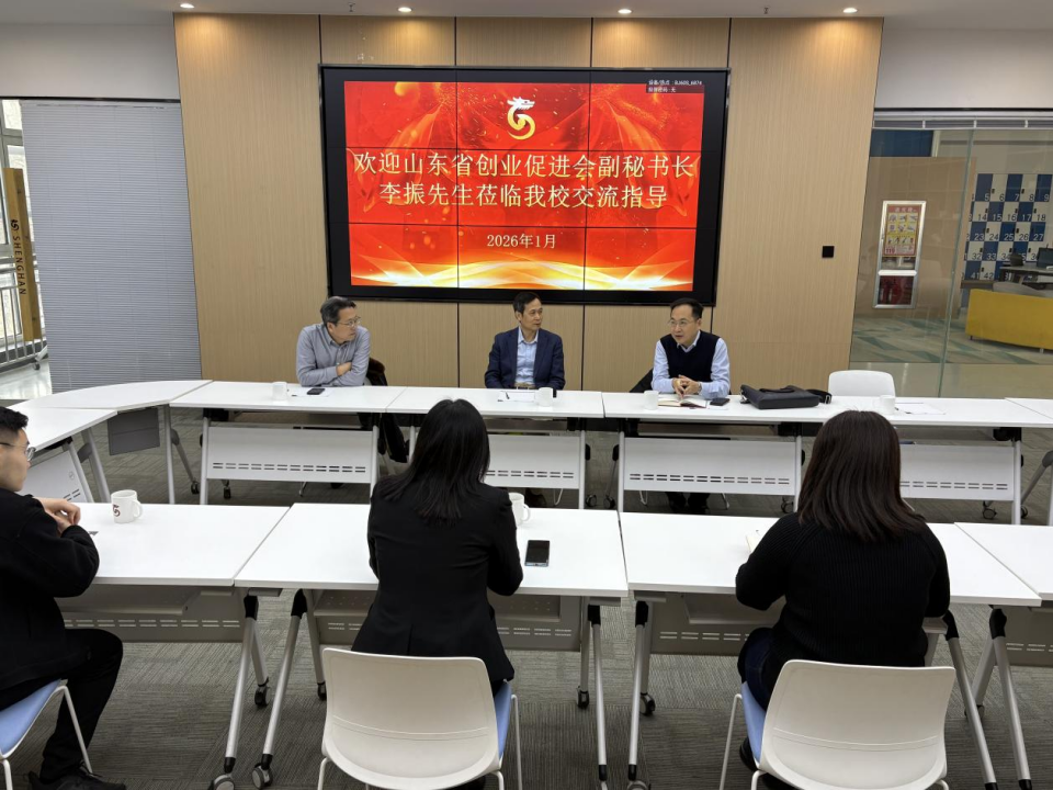 2026年1月16日,山东省创业促进会副秘书长李振一行莅临山东圣翰财贸职业学院创梦空间,开展交流合作。学校领导姚东方亲切会见了李振一行,创新创业学院院长盛雅欣参加座谈会。双方围绕“万人星光计划”落地事宜与学校创新创业学院展开深入洽谈,旨在为校企协同赋能青年创业就业搭建沟通桥梁。
